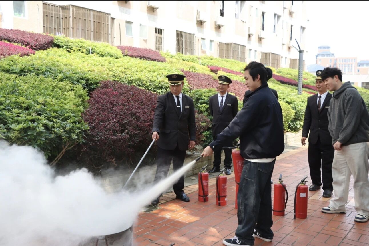 学生们分组有序上前进行灭火器实操练习,在工作人员的指导下反复巩固操作步骤,真正实现了从“知理论”到“会实操”的转变,进一步提升了面对突发火情时的应急处置能力。